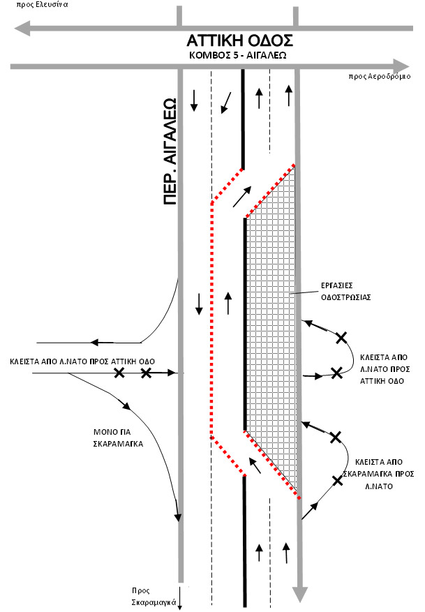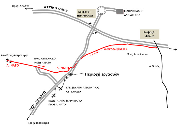 Κλειστό μέχρι τέλος Νοεμβρίου, λόγω εργασιών βαριάς συντήρησης οδοστρώματος από την «Κοινοπραξία Αττική Οδός», θα παραμείνει τμήμα μήκους 1400 μέτρων της Δυτικής Περιφερειακής Λεωφόρου Αιγάλεω (ΔΠΛΑ) στο ρεύμα από Λ.ΝΑΤΟ και Σκαραμαγκά προς Αττική Οδό με έναρξη εργασιών την Πέμπτη 23 Ιουνίου 2011.